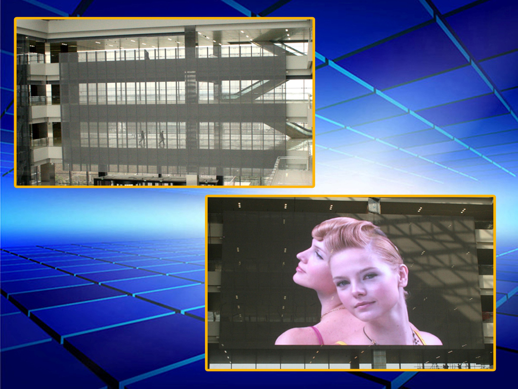 【產(chǎn)品概述】: 通透率高,不影響玻璃幕墻透視效果 屏體輕便,無(wú)需另增鋼結(jié)構(gòu) 可根據(jù)玻璃大小訂制尺寸