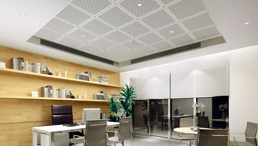 吸音功能:可選擇布孔,穿孔率在1%至25%,具有吸音功能,天花板背面貼上非助燃的吸音紙或吸音棉會達到最佳吸音效果。